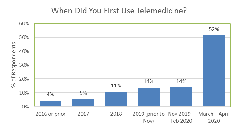 First Time Telemedicine Use Has More Than Tripled Its Pre-Pandemic Run Rate