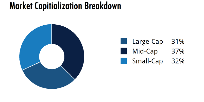 Both indices are strongly tilted toward small- and mid-cap companies (60-70% each, respectively). Historically, small- and mid-cap stocks do well coming out of a recession because they are more levered to economic growth than large-cap stocks.